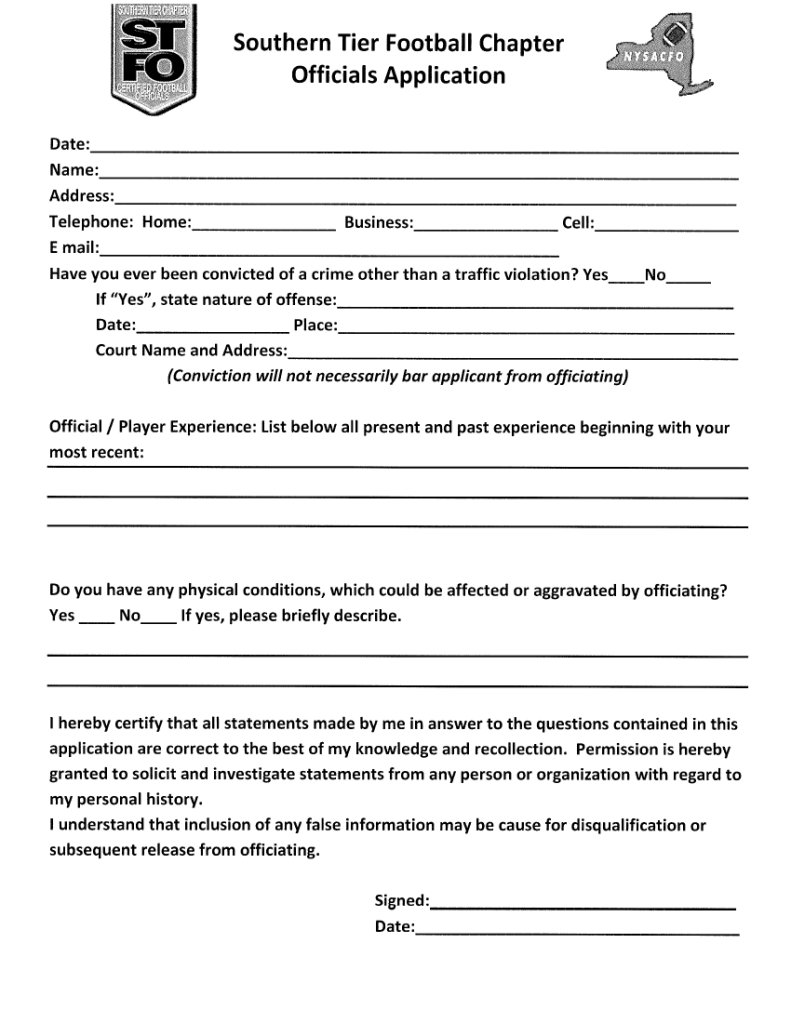 Interested in joining Southern Tier Football Officials? Simply fill out our form, and we’ll contact you with details about weekly meetings, training, and more. Apply now; we welcome new officials at any time!